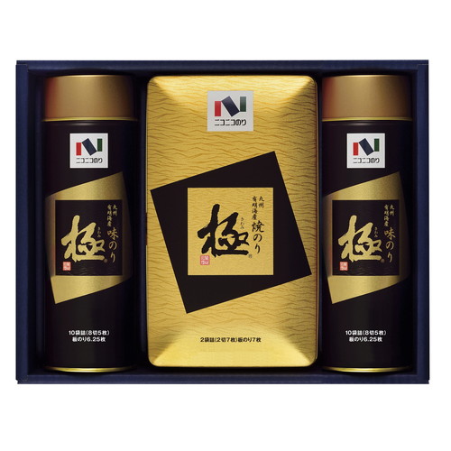 九州有明海産の上質な海苔「極」の焼きのりと味のりを詰合せた、こだわりの逸品ギフトです。