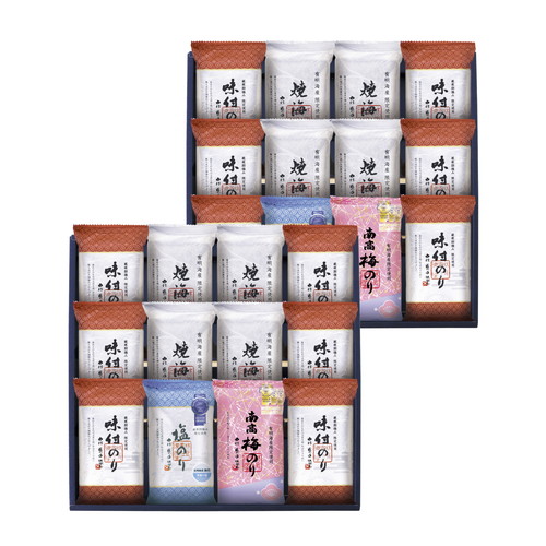 紀州南高梅の薫りと海苔そのものの風味の「南高梅のり」と、海苔そのものの素材を精一杯活かすために職人達が真剣勝負で仕上げた「有明海産塩のり」などを詰合せました。