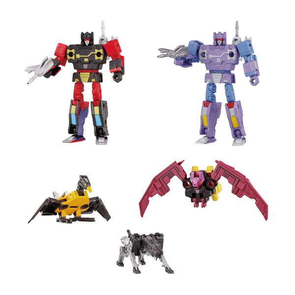 特殊破壊兵の「ランブル」と「フレンジー」が2体セットで、獣型カセットロンである「ジャガー」と「バズソー」と「ラットバット」の3体がアニメカラーになってMPGシリーズに登場!