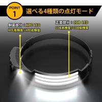 【230°ワイドビームヘッドライト&スポットライト】 新しい230°ワイドビームヘッドライトは、頭を動かさずに視野を照らすことができます。従来のヘッドライトとは異なり、より良い視界を提供し、特定のエリアに集中するためのスポットライトも使用することができます。