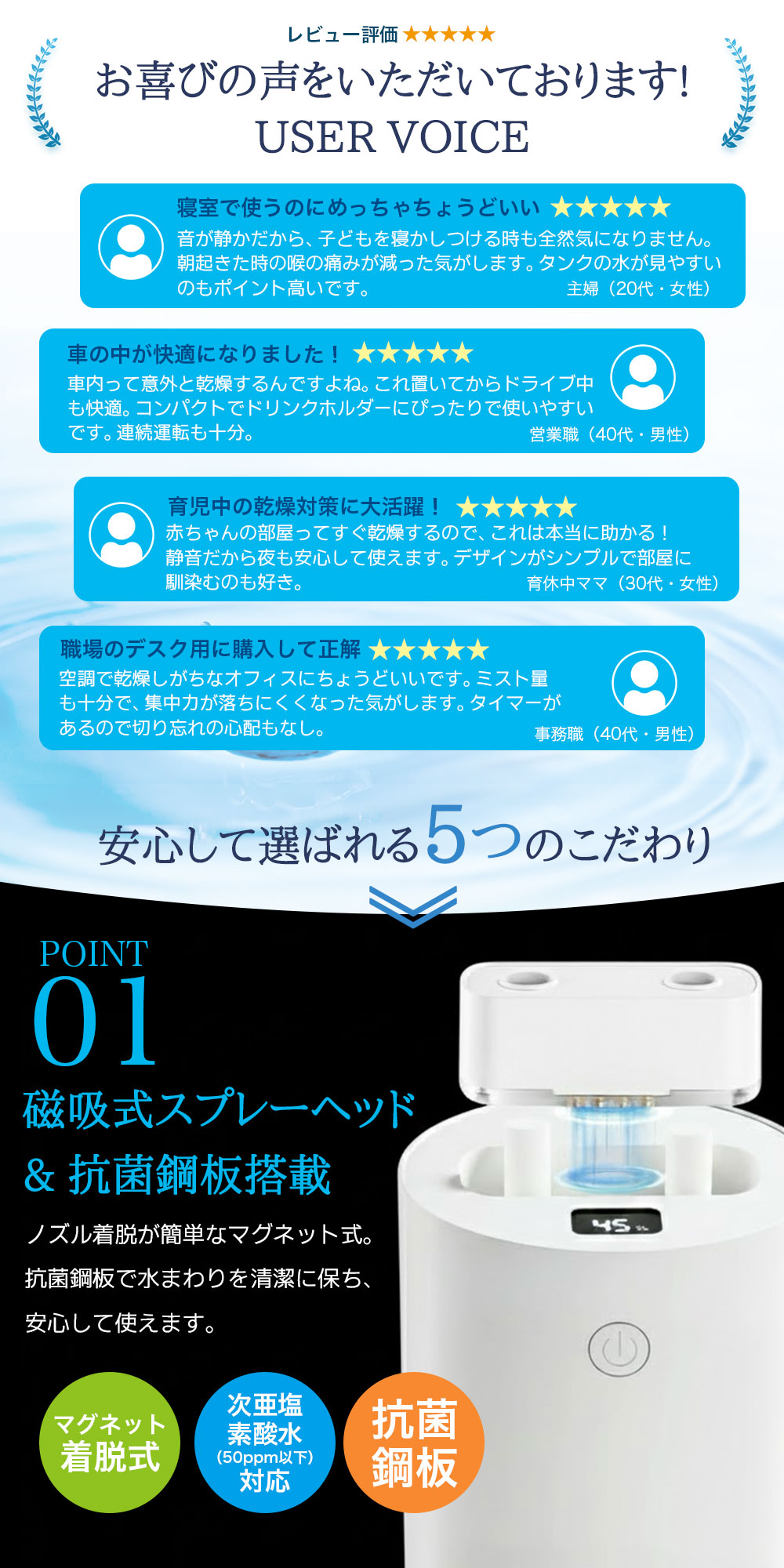 【POINT1:磁吸式スプレーヘッド&抗菌鋼板搭載】