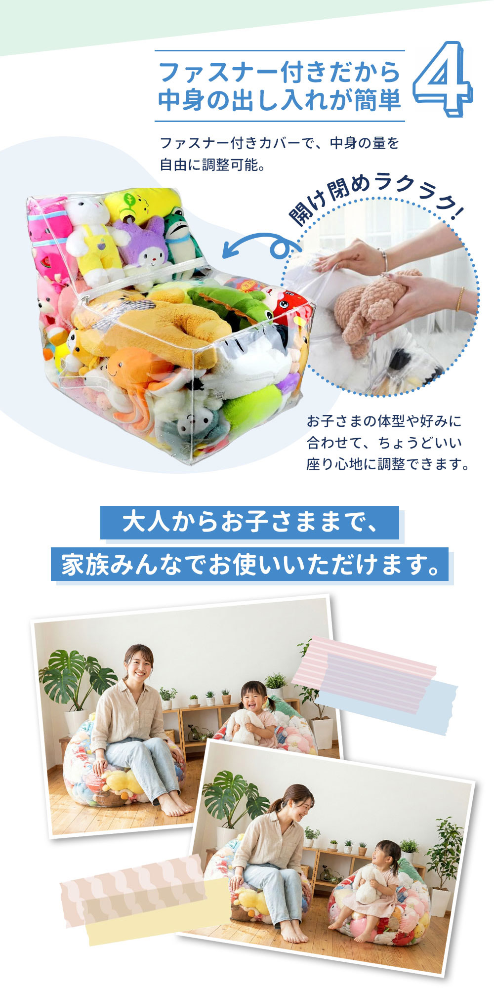 【ポイント2】座れる大容量ビーズチェア仕様