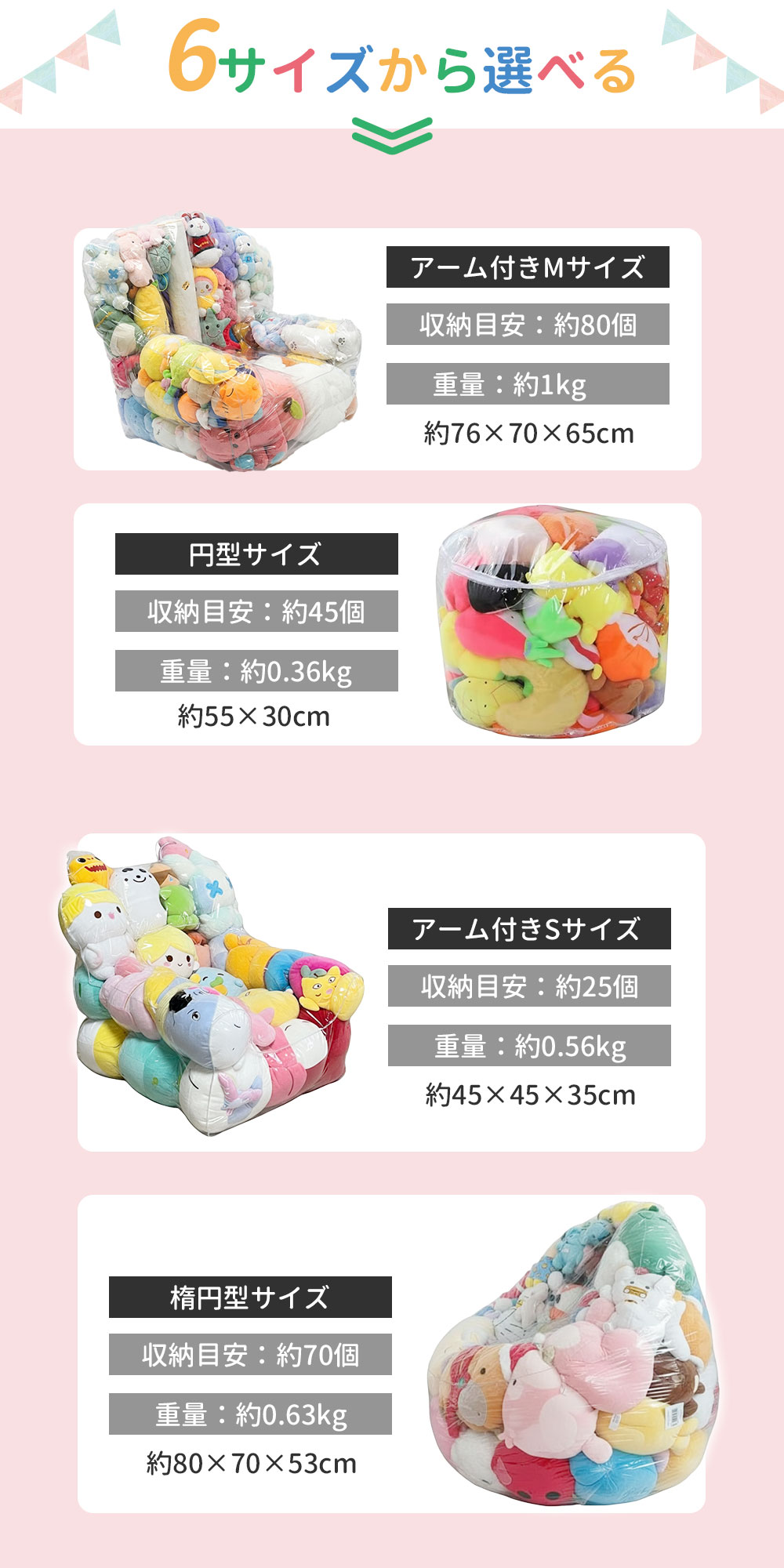 【ポイント5】選べる6サイズでプレゼントにも最適
