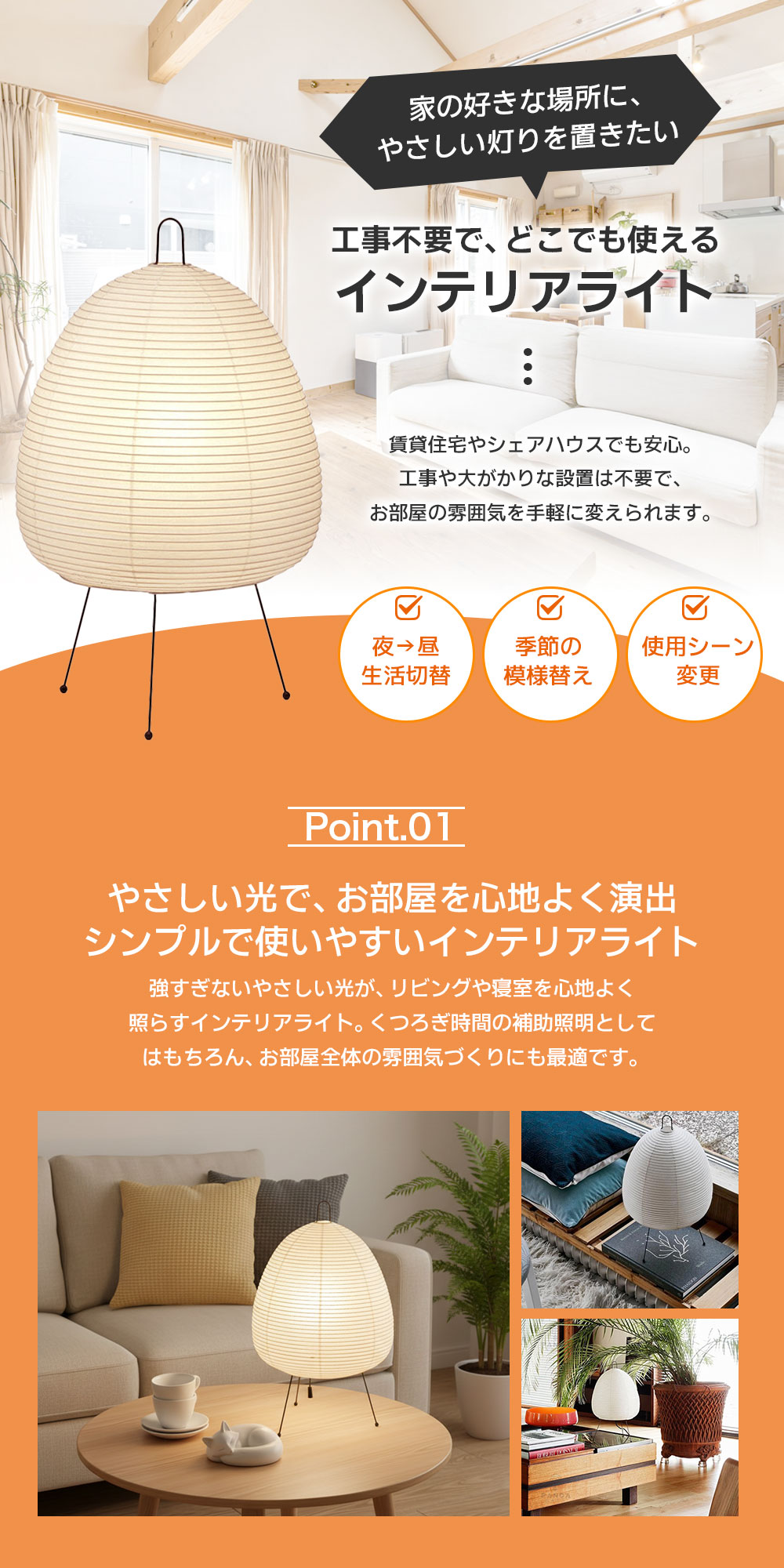 一人暮らしからファミリーまで、毎日の暮らしに寄り添うインテリアライトです。