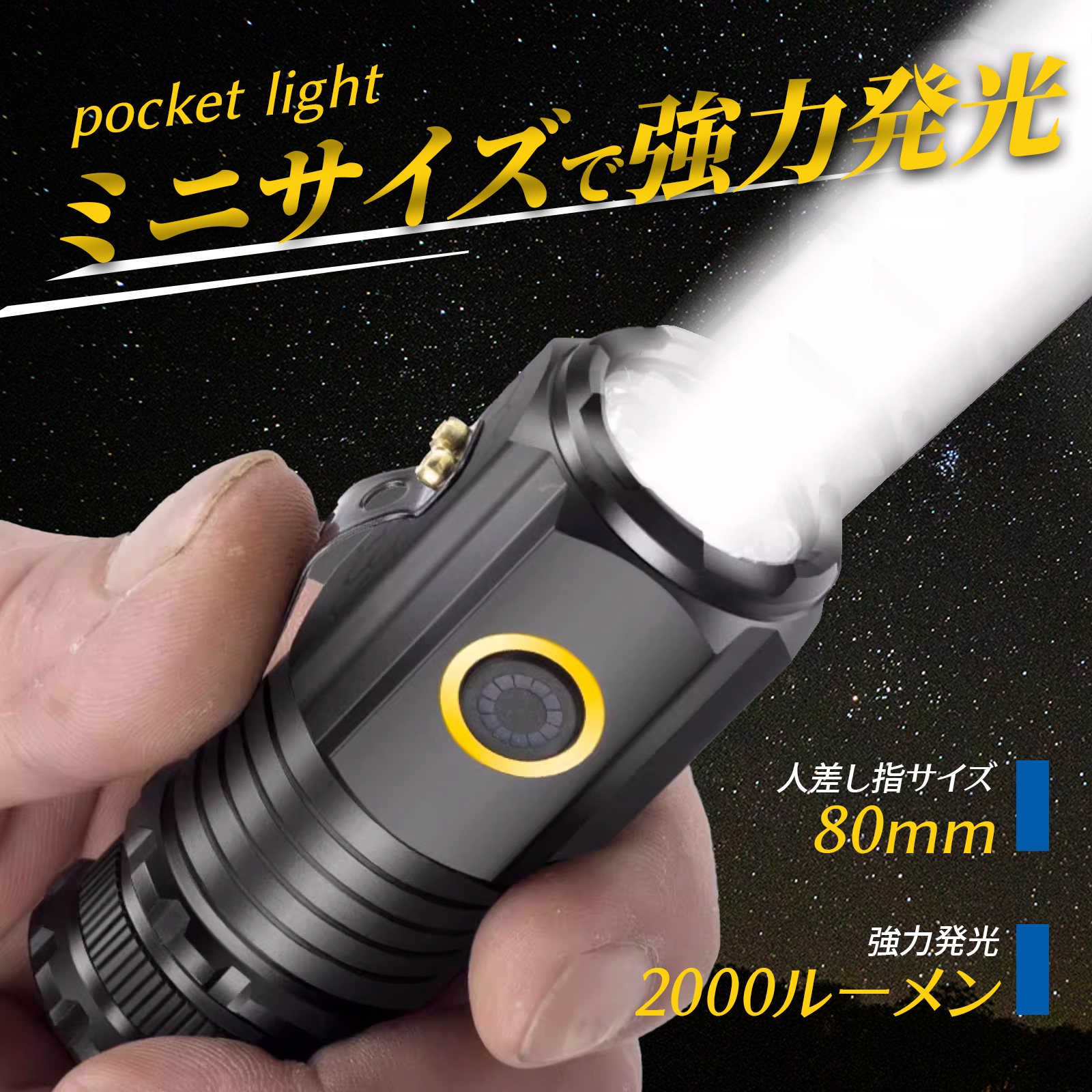 懐中電灯 懐中電灯小型 led 懐中電灯 充電式 手持ち懐中電灯ハンディライト USB 充電式懐中電灯 2000ルーメン高輝度 電池残量 停電 防災 キャンプ
