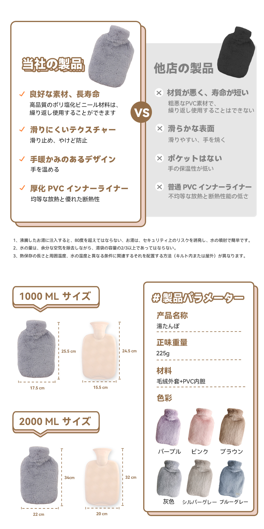 【ご注意】天然ゴム素材のため、多少のにおいがする場合がございますが、ご了承ください。 熱湯注入後やけどをしないように直接肌に触れないこと、適温で安全に使用することをお勧めします。