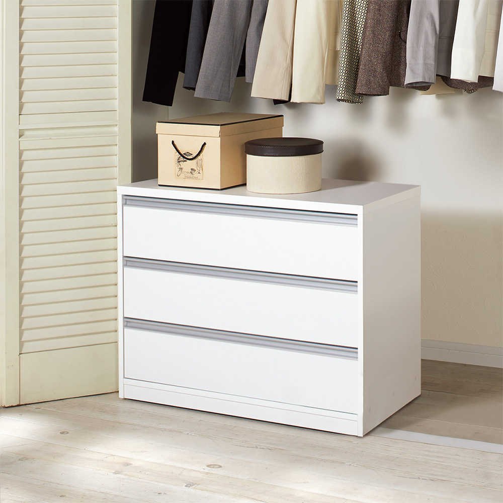 一目で見渡せるワイドな収納力!たっぷり収納しても軽く開け閉めできるストッパー付き引出を全段に採用した衣類収納家具(タンス)。隠しキャスター仕様で見た目はすっきり、移動がラクラク。お掃除や模様替え時簡単に動かせるので大助かり!引き出し内部に取っ手の金具が出っ張らない、衣類にやさしい造りです。スタイリッシュな光沢感を演出するデザイン前面は「ハードコート紙」を使用。通常の強化紙に比べ強度があります。横幅いっぱいのアルミ調の樹脂取っ手も持ちやすく、使いやすい設計。スタイリッシュな光沢感を演出するデザインです。安心の日本製、国産家具国内の熟練の家具職人が、一つ一つ心を込めて丁寧に仕上げております。