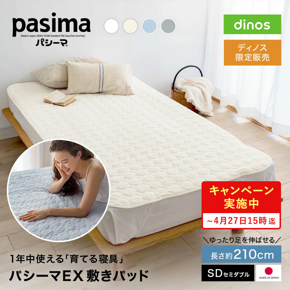パシーマ(R)EX 敷きパッド パットシーツ 日本製 ズレにくい サラサラ 丈夫 ≪セミダブルロング|約120×210cm≫ パシーマ(R)EX 無地 敷きパッド ディノス dinos 人気 おしゃれ