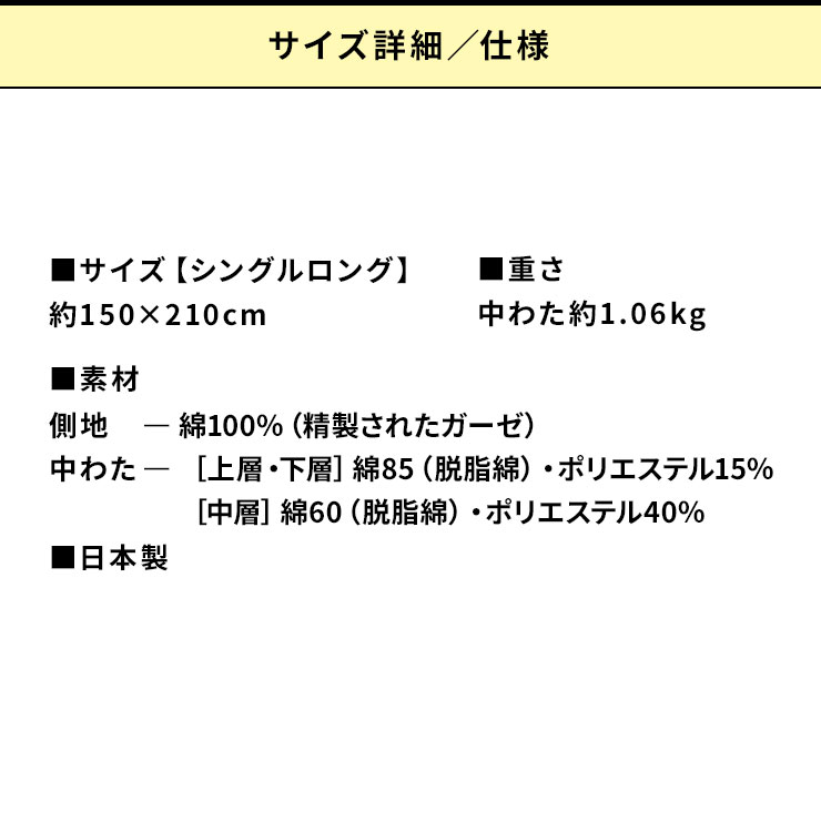 ■サイズ(約):【シングルロング】150×210cm・中わた約1.06kg