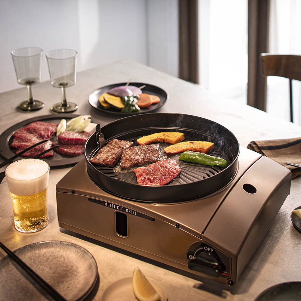 油ハネも煙も従来品より大幅にカット!取り外しできるリングで油ハネをガード。さらに、炎に脂が触れない構造とプレート温度の自動調整で煙の発生も大幅にカット。従来品と比べると、油ハネは約87%、煙は約86%オフで快適さがグンとアップしました。たこ焼きプレート付きで、アウトドアやホームパーティでも活躍。 ※テント使用は禁止です。