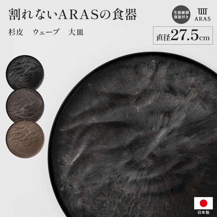 エイラス 割れない皿 割れないうつわ 食器 食洗機対応 日本製 国産 割れ ない 皿 おしゃれ 和皿 洋皿 ARAS 杉皮大皿ウェーブ 27.5cm 割れないお皿 ディノス dinos 人気 おしゃれ