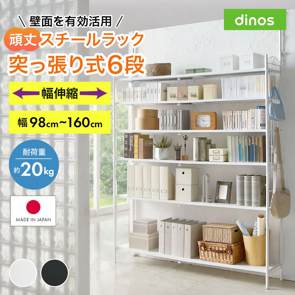 壁面を有効活用できる 幅伸縮 頑丈ラック 突っ張り6段 本棚 ラック シェルフ 突っ張り収納 ディノス dinos 人気 おしゃれ