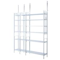 1枚目の画像説明文:安心のツッパリスチールラック。伸縮機能でまるで壁面に合わせたオーダーのような空間づくりを叶えます。