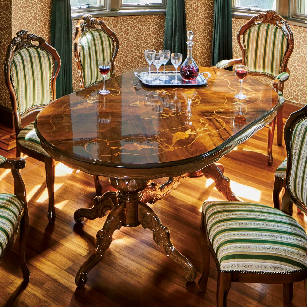◆テーブル全体に象がん細工を施した贅沢で風格漂うヨーロピアンデザイン。