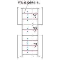 4枚目の画像説明文:収納物のサイズに合わせて分類して収納できます。可動棚板の高さは3cm間隔で細かく調節できます。(こちらの商品は扉は片側のみです)