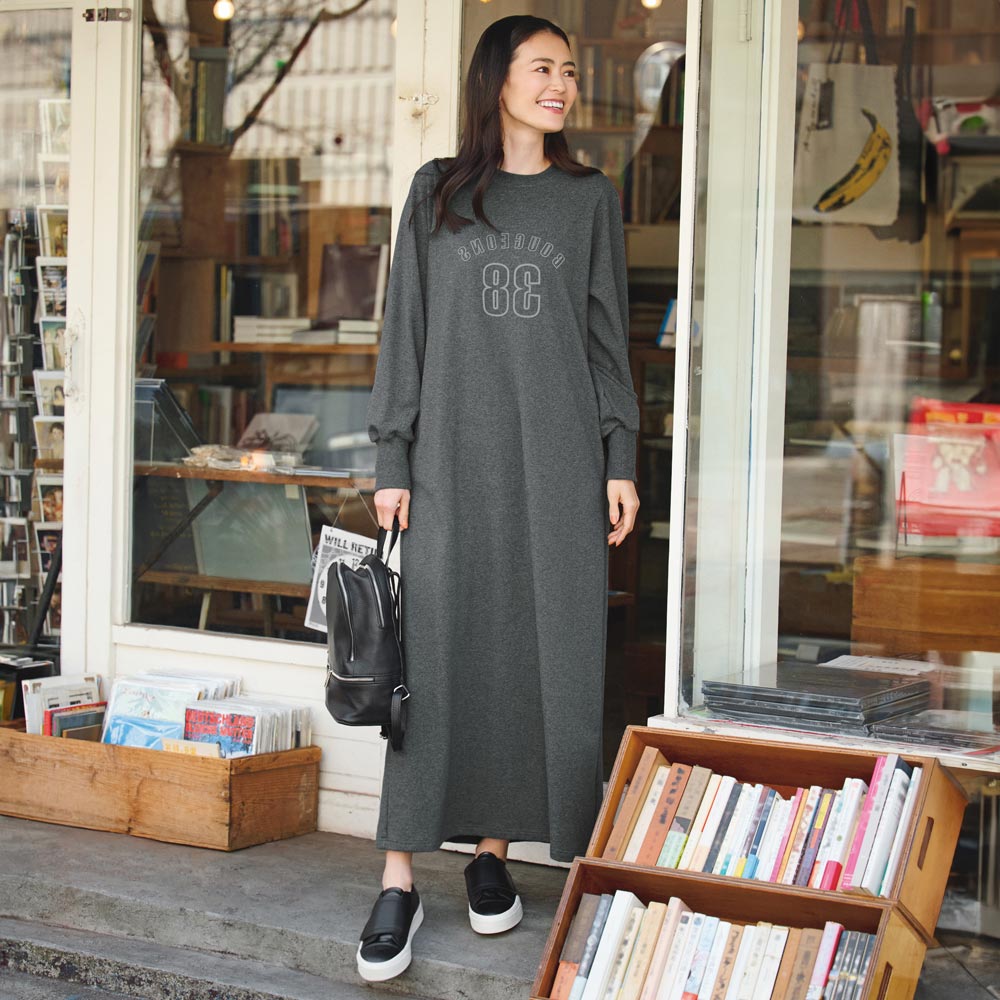 フロッキーナンバープリント スウェットロングワンピース ワンピース マキシワンピース ロングワンピース ディノス dinos 人気 おしゃれ 30代 40代 50代 60代 レディース