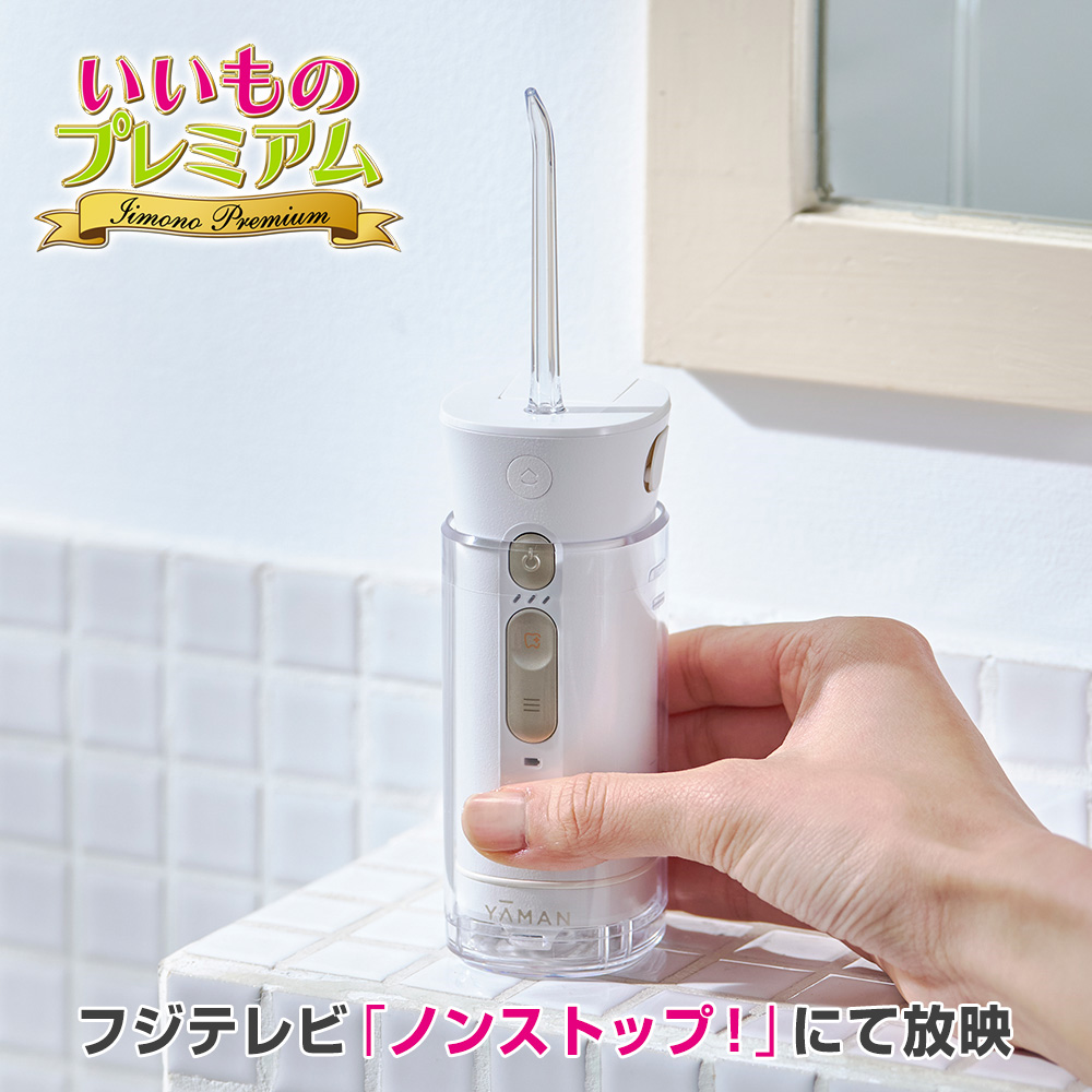 1枚目の画像説明文:美容機器のヤーマンが考える、口腔健康美の新常識。「ジェットフロス」なら水流の力だけで歯ブラシだけでは取り切れない汚れも除去してくれるから、口内をスッキリ清潔に保てます。