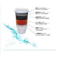 1.特殊メッシュフィルター 大きな埃・土・サビなどを取り除く2.高精度ろ過フィルター 細かな埃・土・サビなどを取り除く3.高品質活性炭フィルター 残留塩素、臭気の除去、初期除菌4.イオン交換フィルター 重金属、無機物質などを除去5.超微細フィルター 活性炭・イオン交換フィルターなどの素材を除去6.除菌フィルター 水中に含まれる細菌・ウイルスを除菌