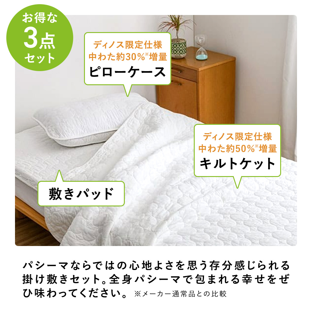 パシーマ 敷きパッド ベッドパッド パシーマ(R)EX 無地 お得な3点セット(掛け敷きピローケース シングル) ディノス dinos 人気 おしゃれ