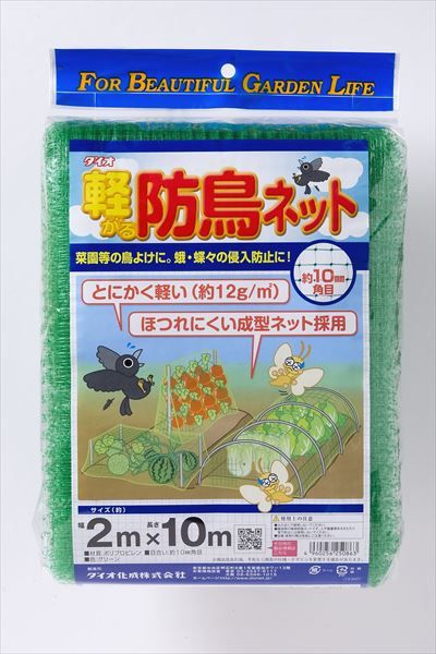 公式 軽々防鳥ネット 目合い 10mm サイズ 幅2m×長さ10m 緑 【ダイオブランド】