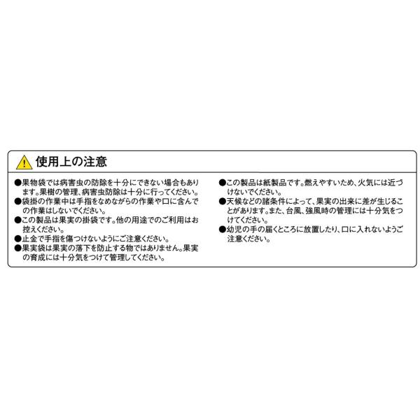 ●果実袋では病害虫の防除を十分にできない場合もあります。果樹の管理、病害虫防除は十分に行ってください。