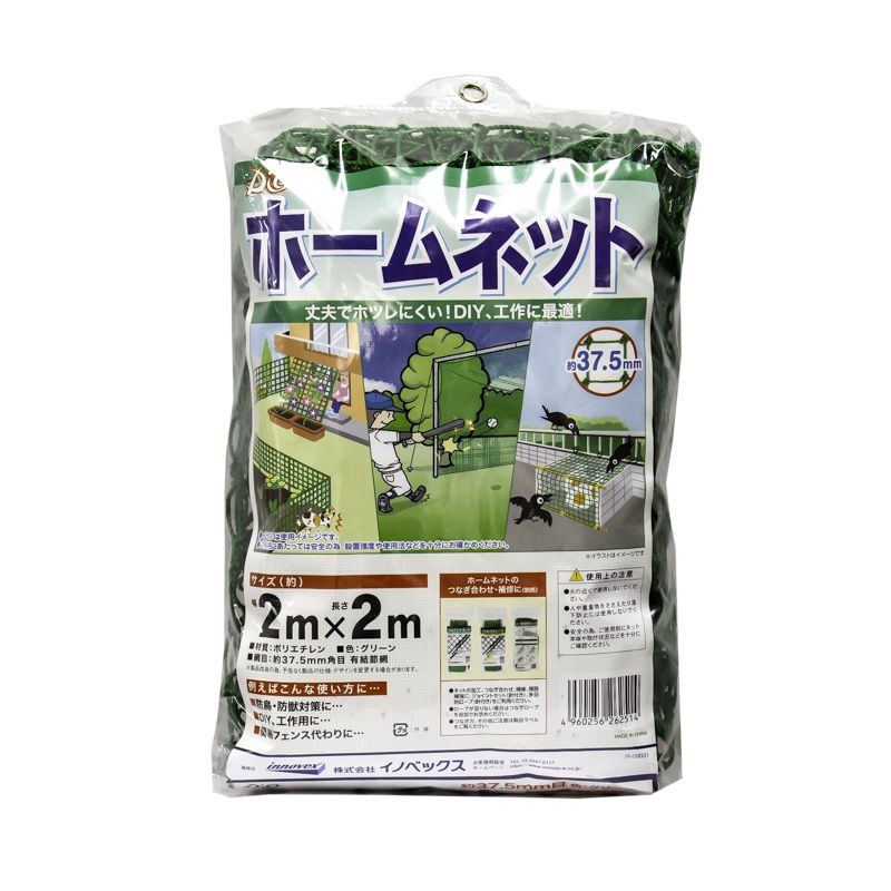 ●スポーツ・防球用、簡易フェンス、防鳥、防獣など、様々な用途へご利用いただける約37.5mm目の丈夫な有結ネット。