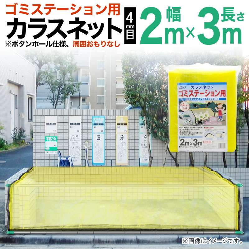 カラス対策 枠のある集積所 ゴミステーション用 防鳥 黄 2mx3m 網目4mm ボタンホール(取付穴)加工済 ゴミ置き場 カラスネット ゴミネット カラスネット01