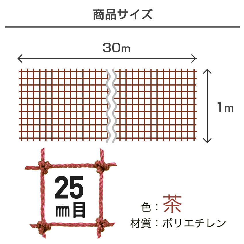 ●スポーツ・防球用、簡易フェンス、鳥よけ、防獣など、様々な用途へご利用いただける約25mm目の丈夫な有結ネット。