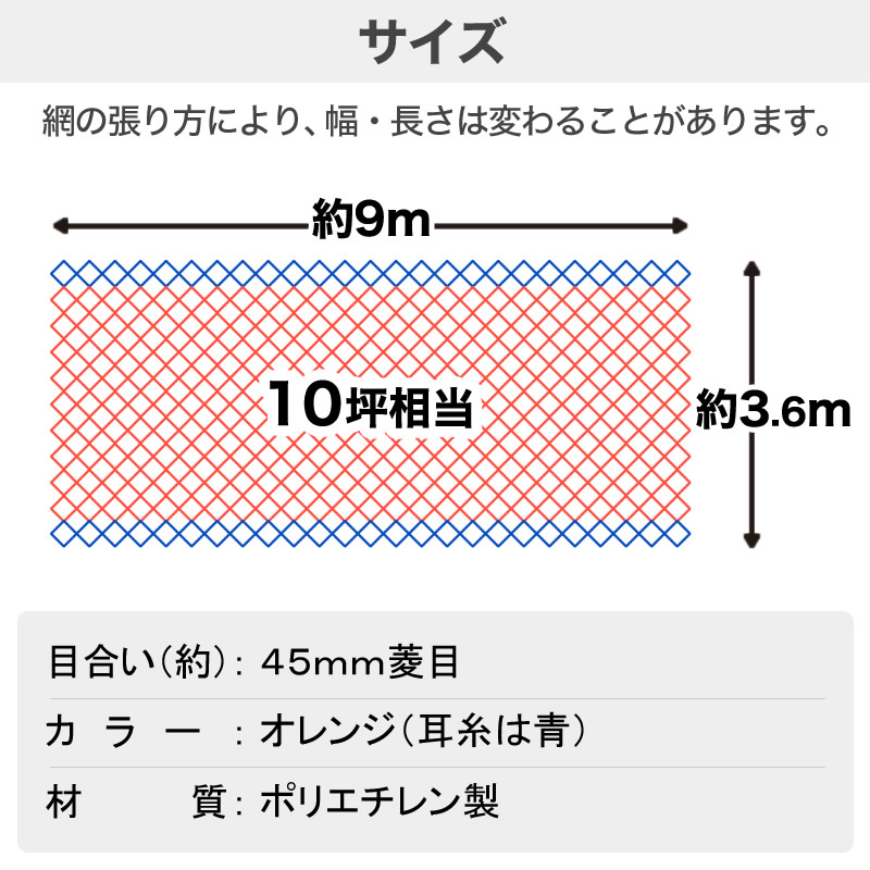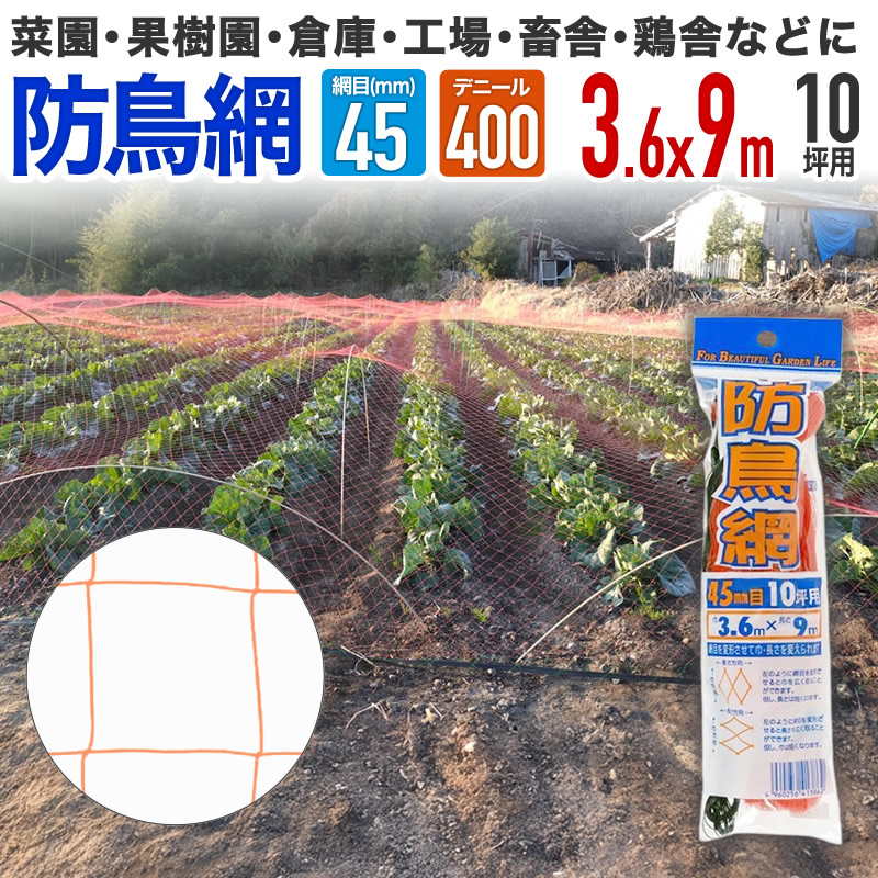 公式 防鳥網 オレンジ 45mm目 10坪 3.6mx9m 400D 農園芸用 車庫、倉庫、工場にも 経済的で手軽な防鳥対策に 1年程度の短期利用向け 【ダイオブランド】