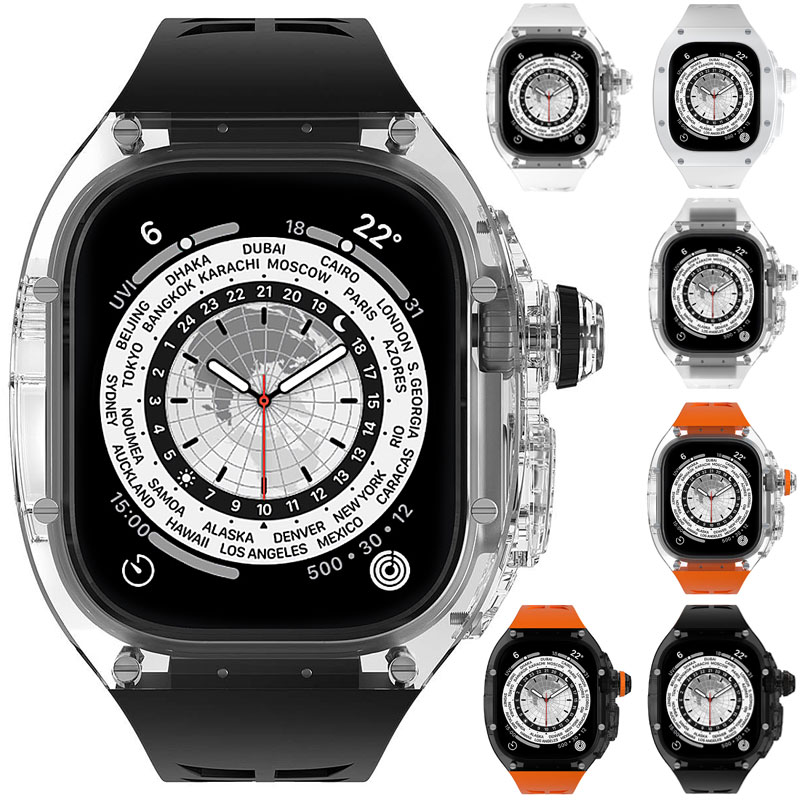 apple watch アップルウォッチ バンド ULTRA 49mm クリア 透明 ウルトラ ベルト ステンレス ケース カバー 一体型 ラバー メンズ