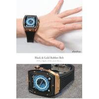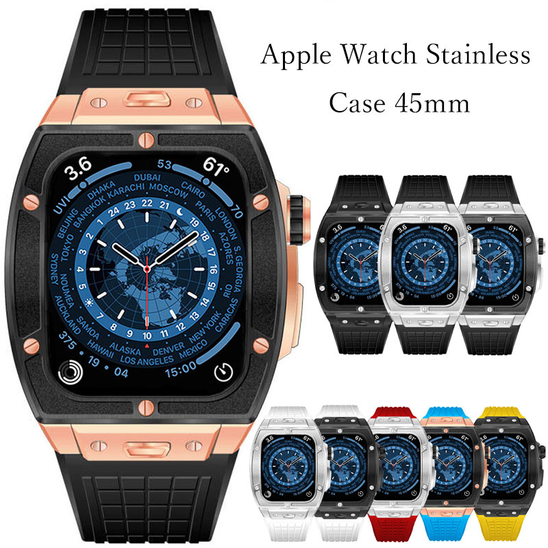 apple watch アップルウォッチ バンド ベルト ステンレス ケース カバー 一体型 ラバー 高級ベルト メンズ