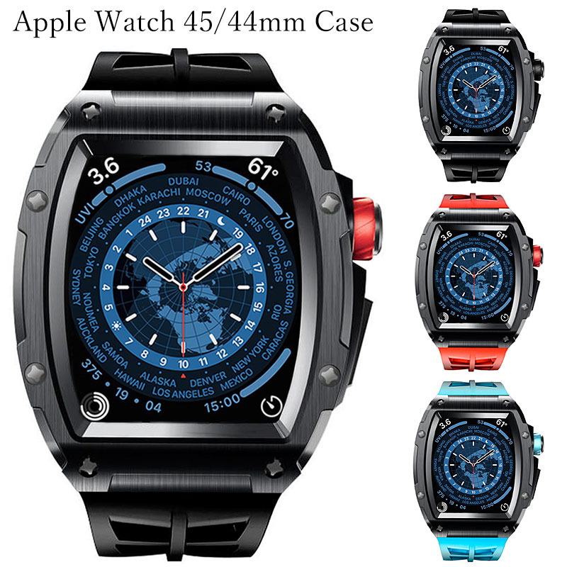 apple watch アップルウォッチ バンド ベルト ステンレス ケース カバー 一体型 ラバー メンズ クロコダイル