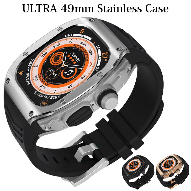 apple watch アップルウォッチ ULTRA ウルトラ 49mm バンド ベルト ステンレス ケース カバー 一体型 ラバー メンズ