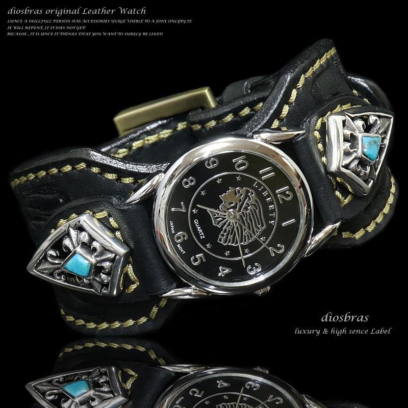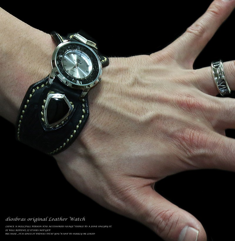 レザーウォッチ カービング 時計 シルバー925 バイカー スティングレー エイ革 本革 ブレス ウォッチ 牛革 腕時計