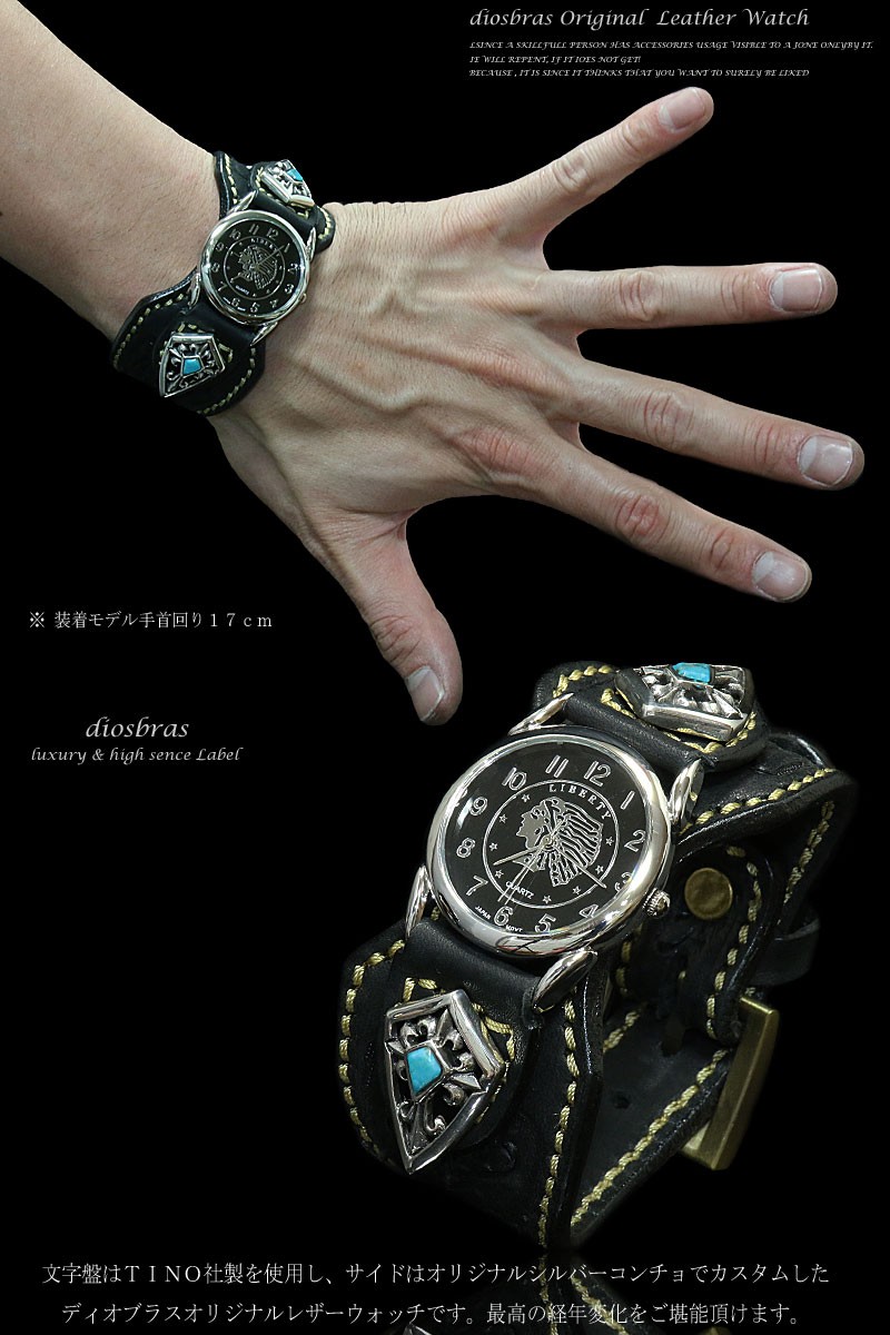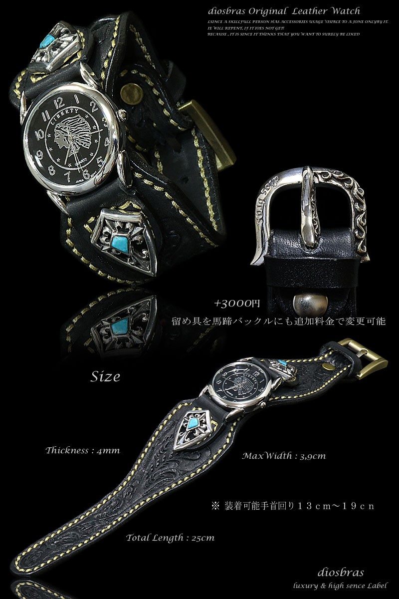 サドルレザーにカービングを施し、全体にカーブを利かせることによりワイルドかつシャープな印象でさらにオリジナルコンチョが高級感を漂わせるカスタムウォッチです。