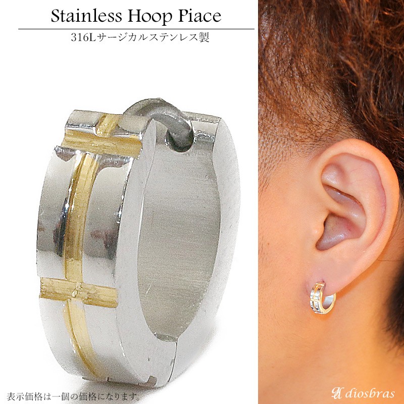 フープピアスのセンター部分から中折れするワンタッチタイプのリングピアスなので、 ピアス初心者でも簡単に着脱出来るピアスです。