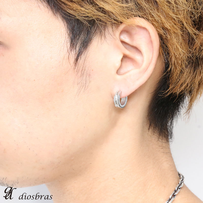 フープピアスのセンター部分から中折れするワンタッチタイプのリングピアスなので、 ピアス初心者でも簡単に着脱出来るピアスです。