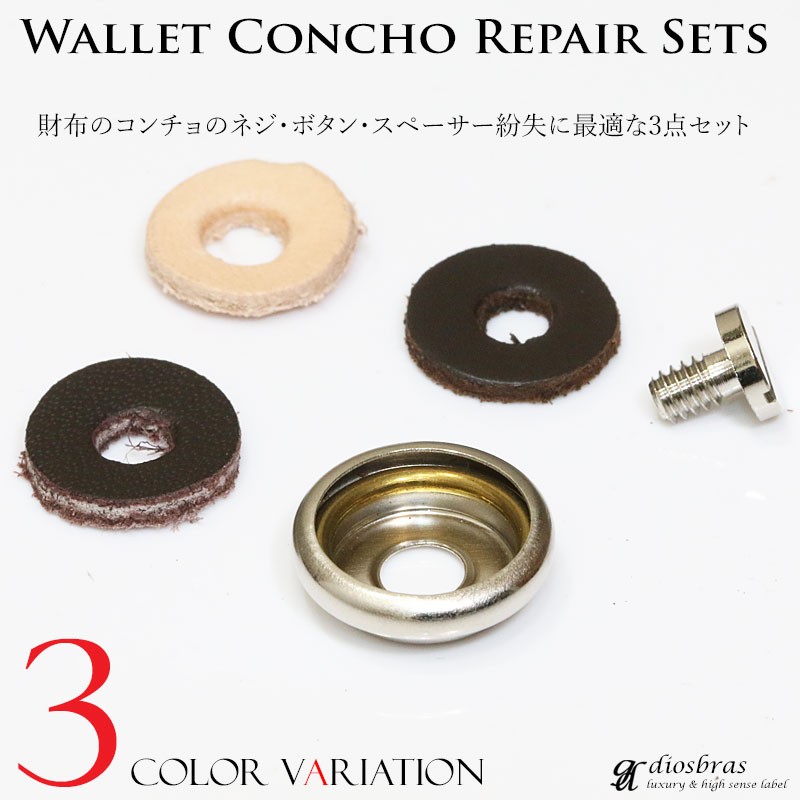 コンチョ ボタン 革スペーサー ネジ 3点セット 財布の補修 ネジの紛失