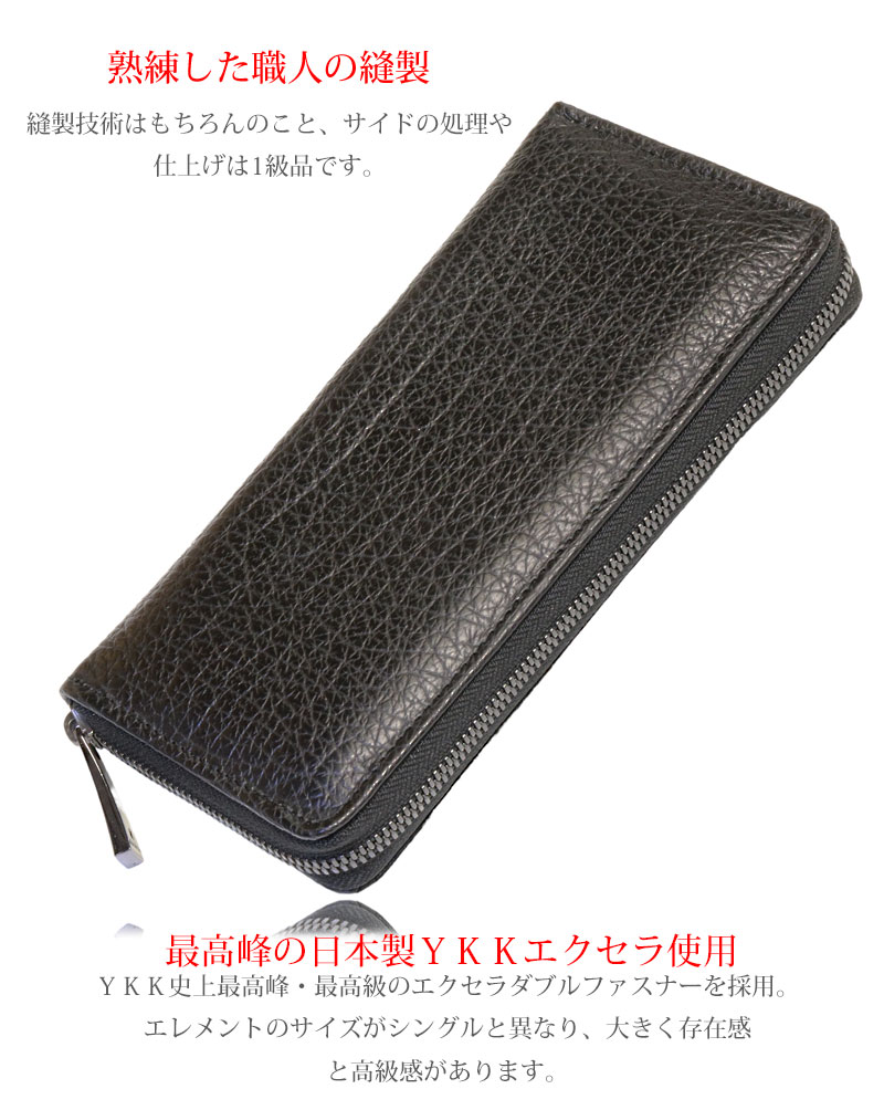 シャークスキン 長財布 メンズ レディース 鮫革 ラウンド ジッパー レザーウォレット 紳士 婦人 エコレザー認定
