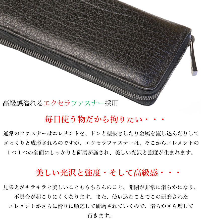ファスナーには国産最高峰エクセラを使用した至高の逸品です。