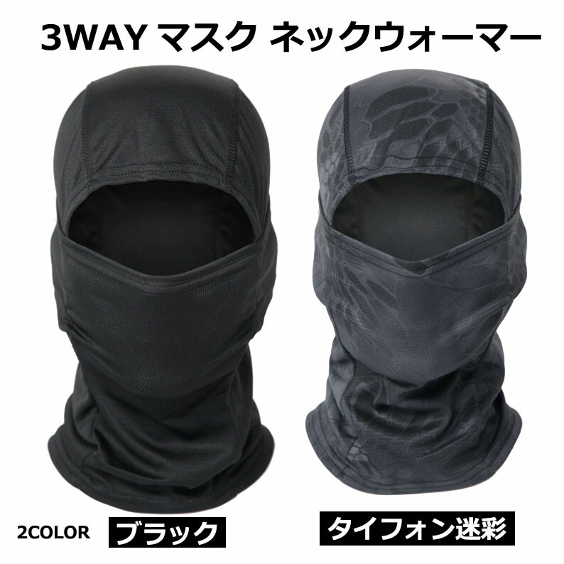 フェイスマスク 3wayマスク ネックウォーマー バラクラバ 目出し帽 カモフラージュ サバゲー 防寒 覆面 日焼け 防止 帽子 バイク
