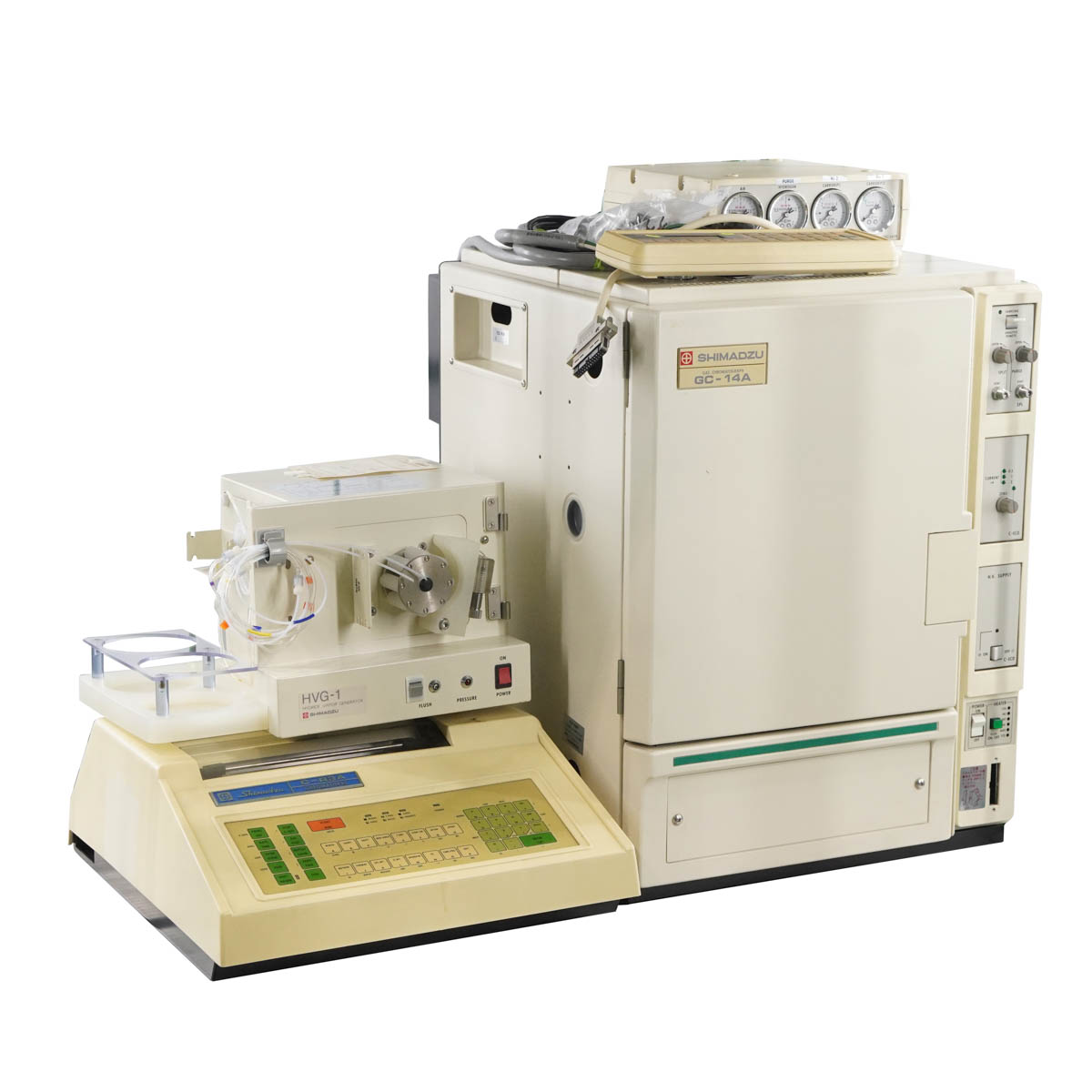 [DW]USED 8日保証 SHIMADZU GC-14A GAS CHROMATOGRAPH ガスクロマトグラフ HVG-1 C-R3A CHROMATOPAC[ST04227-0024]