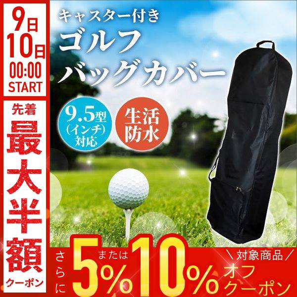 トラベルカバー 防水 ゴルフ ゴルフバッグ 保管 ゴルフバック レインカバー 雨カバー バッグカバー 持ち運び 収納 軽量 ショルダー 肩掛け キャスター 黒