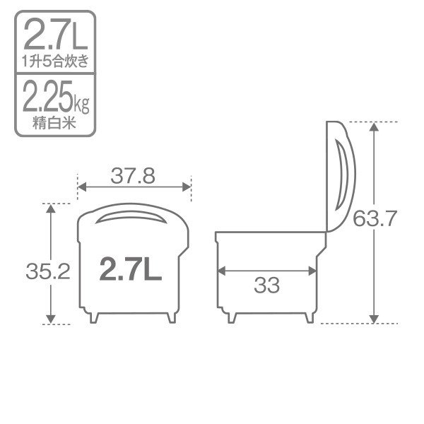 容量:1.26〜2.7L(7合〜1升5合)