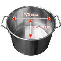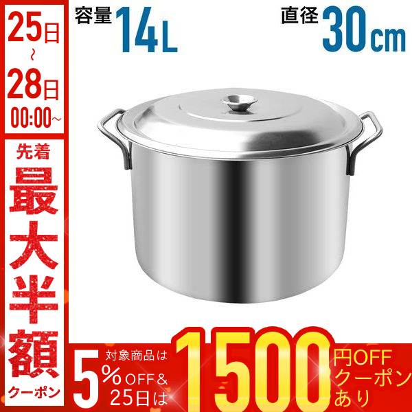 【30cm/容量14L】 ステンレス製寸胴鍋 ◆寸胴鍋とは内径に比べて底が深い、まさしく寸胴の形をしています。◆寸胴鍋が占める面積に比べて容量が大きく、◆また蒸発面が小さいのでスープの煮出し、麺類の湯で上げなどに最適です。◆飲食店や町内会や学校行事など各種イベントにいかがでしょうか。◆錆に強いステンレス製、煮物全般はこれで作れます。◆表面はきれいに鏡面加工されています。【商品詳細】容量:14L材質:ステンレスサイズ(約):外寸・幅36×直径32×高さ22cm 内寸・直径30×深さ19.5cm重さ(約):2kg