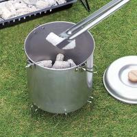 たっぷり入る深型タイプ。自然消火した炭は再利用ができます。