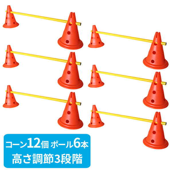 2本のコーンにポールを差し込んで横向きのポールを作ることができます。