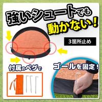 付属のペグで地面にしっかり固定付属のペグを打ち込んで固定すれば強いシュートを打ってもゴールが吹き飛びません。
