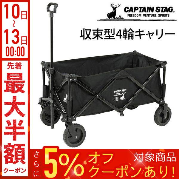 アウトドア ワゴンカート おしゃれ 軽量 大型 キャプテンスタッグ CSブラックラベル 収束型4輪キャリー UL-1031 耐荷重80kg CAPTAIN STAG