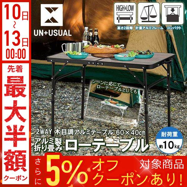 アウトドア テーブル アルミ ヴィンテージ調 木目調 2WAY アルミテーブル 60cm × 40cm FT20-6040 高さ 2段階 調節 ハイテーブル ローテーブル